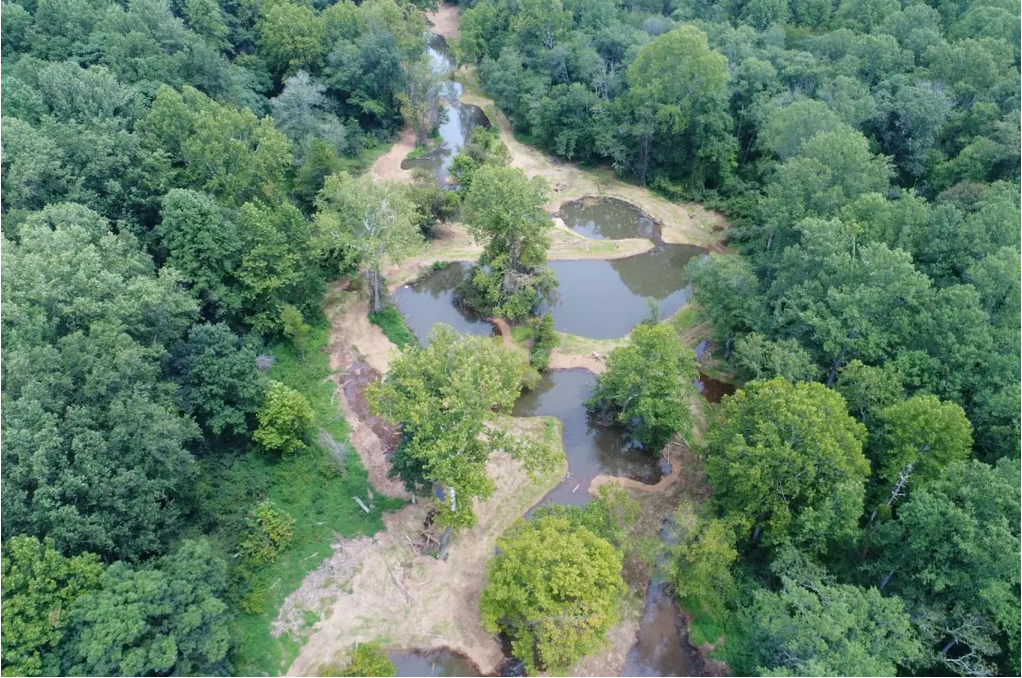 At nearly 1,200 acres, Biscuit Run is the largest park in Albemarle County, featuring more than eight miles of trails and one very unusual stream. It cut deep into the land, eroding its banks and flooding areas downstream, but over the last few years the county has been building small dams — using soil, tree limbs and other natural materials to create 35 ponds.