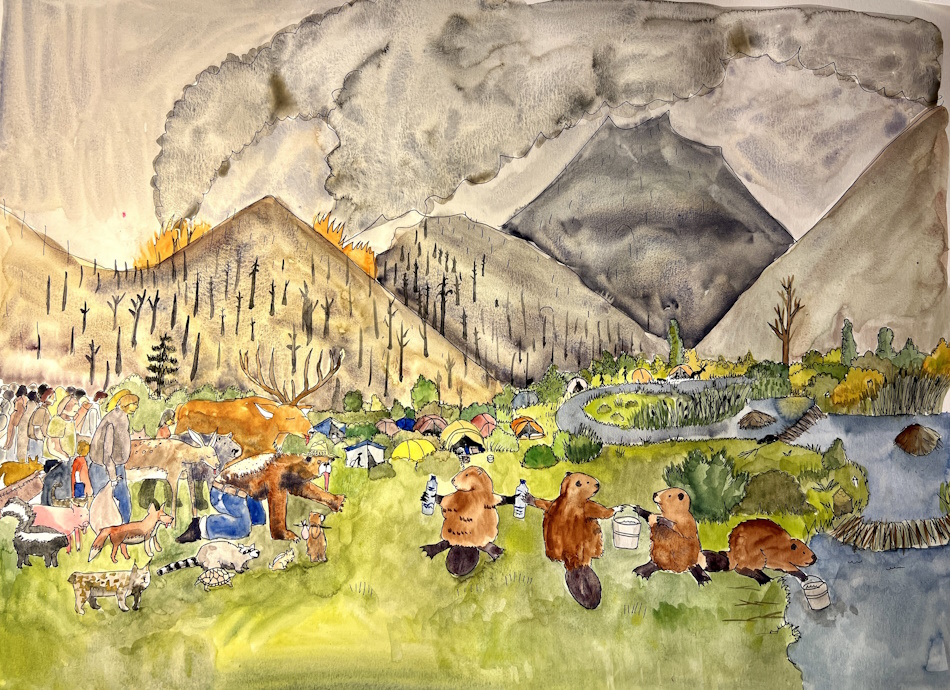 Her art illustrates with poetry and precision the crucial role of the beaver in the restoration of aquatic ecosystems, mixing art, science and environmental advocacy.