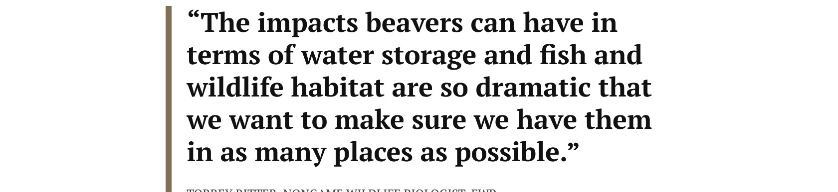 “The broader goal is to take beavers from areas where they’re causing problems for people or imperiled fish species, and put them in places of their historical range where they can bring about the benefits that we want,” Ritter added.