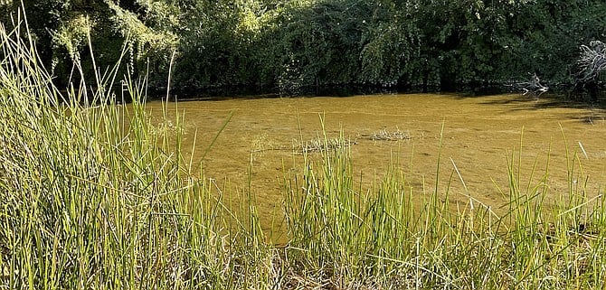 Word is that a colony of the cuddly critters — the only one in the county — is alive and well on this river. Further word is that if the beavers are going to come out from their “lodges” — the stick houses they build, partly underwater, to protect them from enemies like coyotes — it’s in big wide pools like this one here.