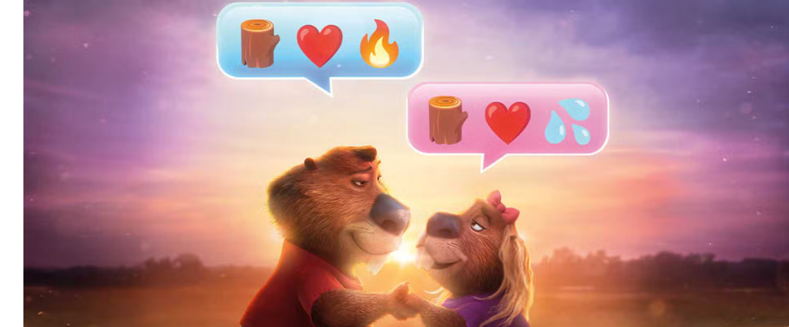 The campaign, an ingenious parody of popular dating apps like Tinder (unless it is Grindr, in which case this has a whole lot more going on), showcases our buck-toothed lovers cozied up on a massive pile of logs, hands clasped, gazing soulfully into each other’s eyes. But it’s their digital exchange that’s truly sent the internet, and us, into fits of laughter.