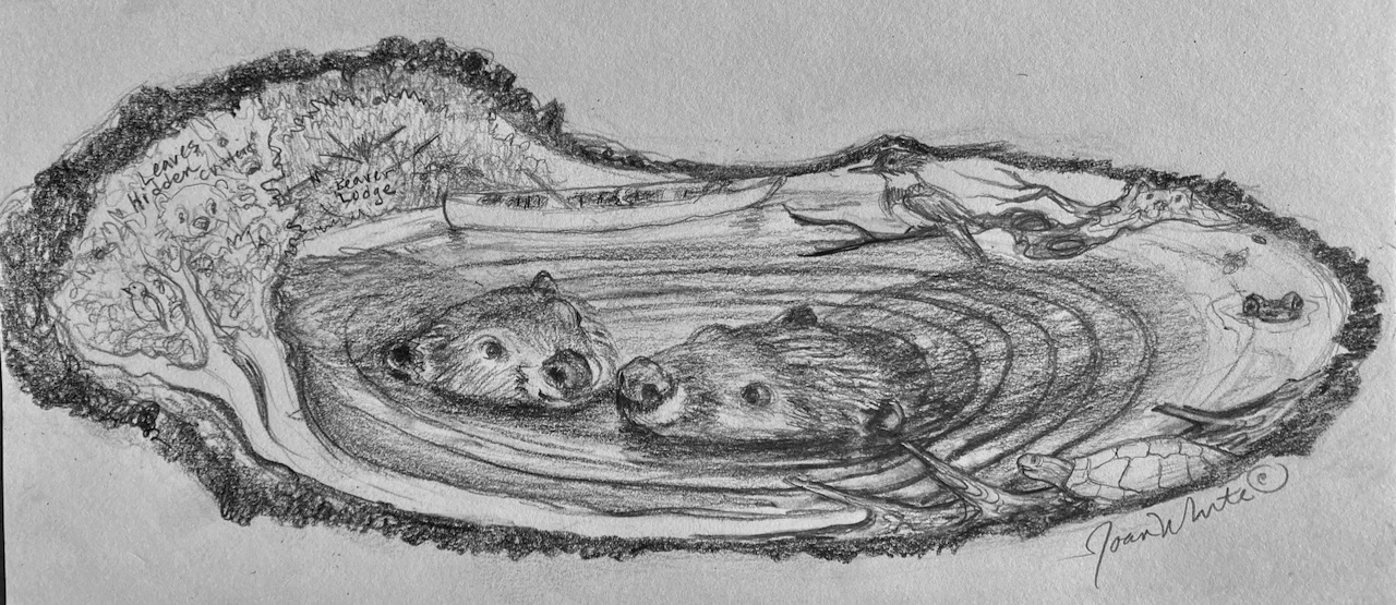 This year marked Jon and my 40th anniversary.. To celebrate I thought I’d commission the talented Joan White of Wisconsin to recreate my favorite photo from beloved local photographer Rusty Cohn, He captured in Napa what I believe is the perfect moment of beaver pair bonding.