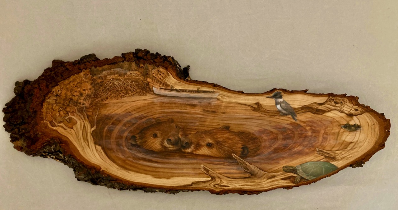 You might remember that we commissioned a lovely painting from wood artist Joan White in Wisconsin for our 40th anniversary. Well she finished the piece this weekend and I just had to share. Here is a reminder of what she had to work with. It is 8 inches by 22 inches.