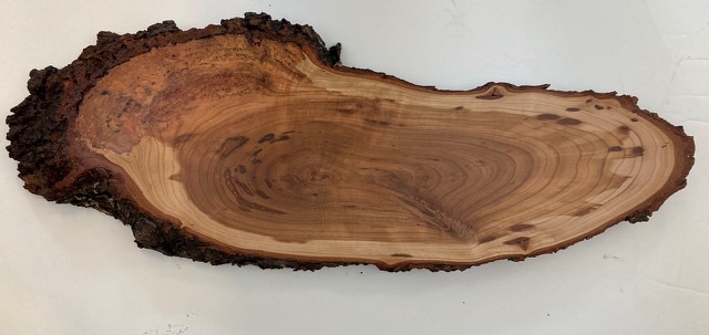 It’s a slice of a cherry wood burl lovingly prepared by her husband. This is the photo taken by Rusty Cohn I asked her to work with,