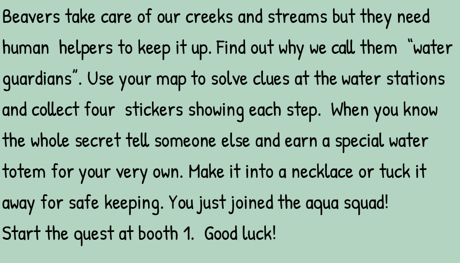 The Teaching project for this years beaver festival is finally falling into place and I thought  you want to see it all together.    The idea is to learn about all the ways that beaver works help water,